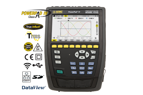 Analizador de energía Clase A, TRMS, 1000 Vrms AC/DC, 10 kArms / 5000 ADC, frecuencia, transitorios, armónicos, energía y software DataView®.