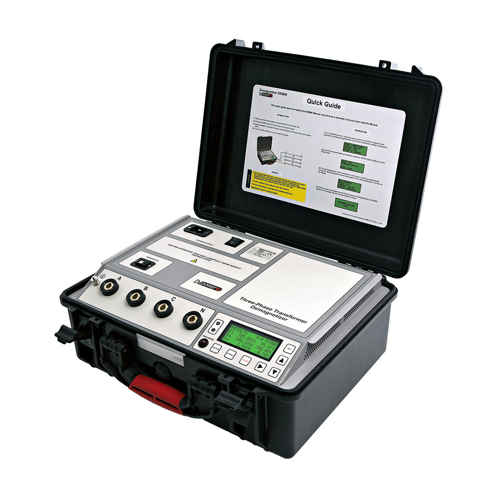 Desmagnetizador de nucleo de transformador Desmagnetizador de nucleo de transformador Desmagnetizador de nucleo de transformador Después de una prueba de corriente continua, como la medición de la resistencia de devanado, el núcleo magnético de un transformador de potencia o de medida puede quedar magnetizado (magnetismo remanente).