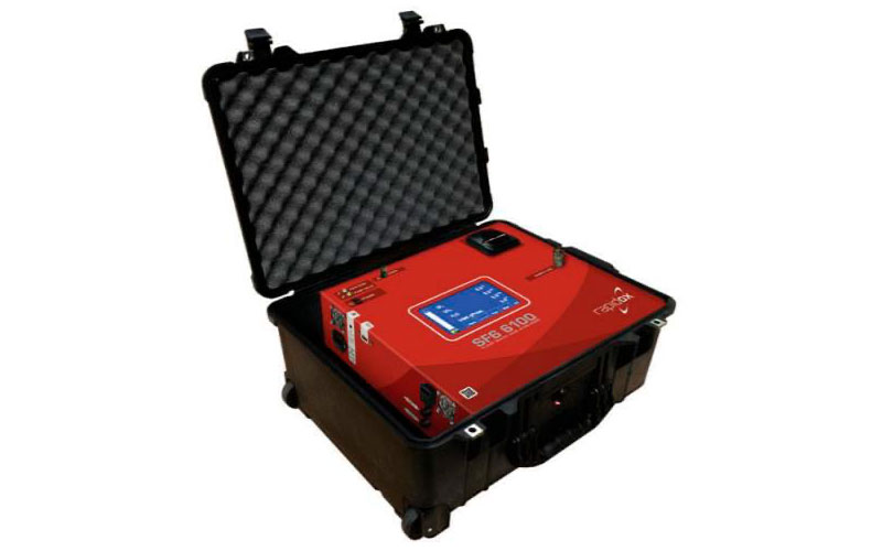 Dispositivos para medir la pureza del gas SF6 y evaluar su condición en equipos eléctricos de potencia.